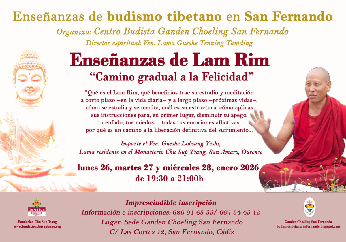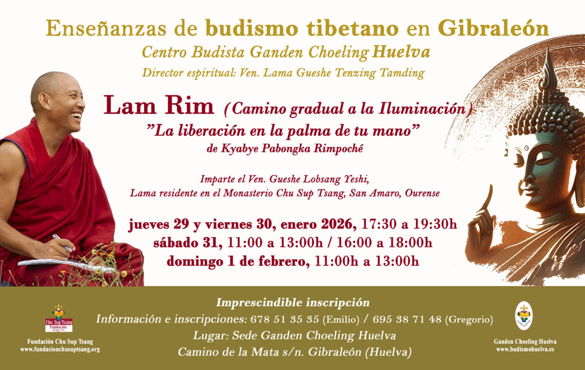 Ganden Choeling Málaga: 23, 24 y 25 de enero de 2026. Enseñanzas de Lam Rim (Camino gradual a la felicidad).